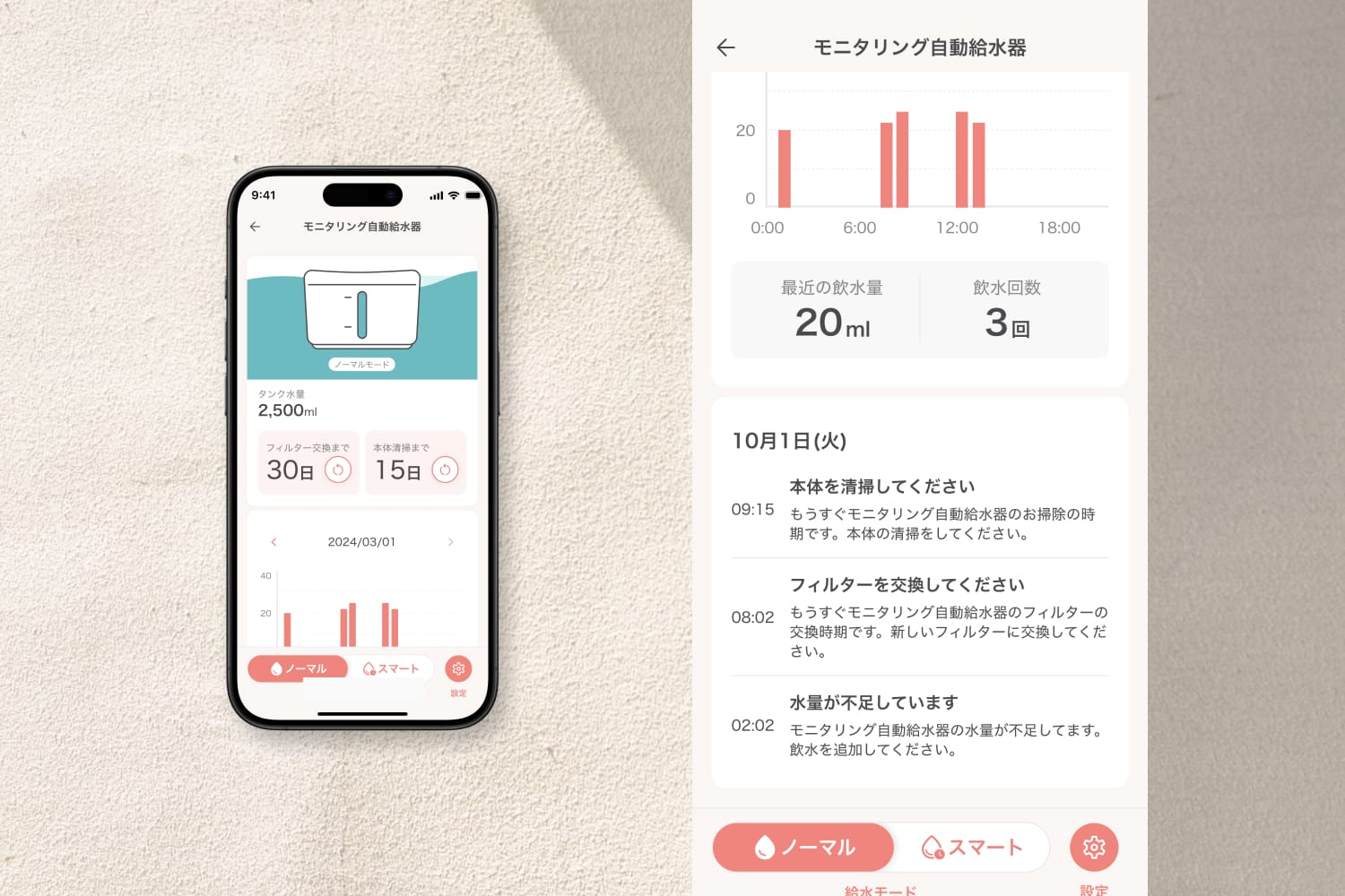 飲水量を記録できる自動給水器